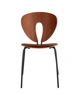 The structure of the chair is always in shiny chrome, its seat is available in different woods, such as ash, walnut or oak.
