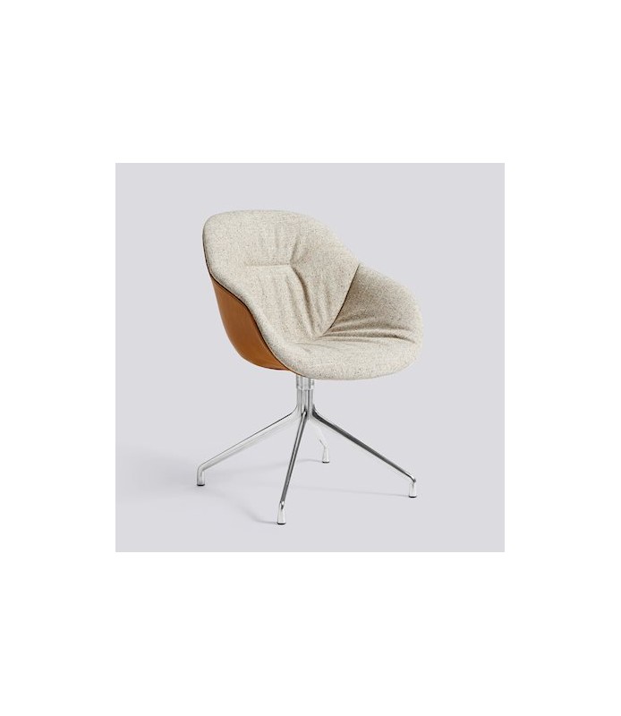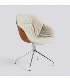 The AAC 121 Soft Duo counterbalances its soft quilted shell and contrasting materials with the more formal expression of the aluminium swivel base. Retaining the same high backrest and generous seat that characterises the series, this design features a functional base with legs that fan out from the centre. The base is available in polished or powder-coated aluminium, and the quilted shell is offered with two different textiles or leathers to create a unique look that works equally well in corporate, public, or private contexts. /Please note that more configurations are available than the options shown here.