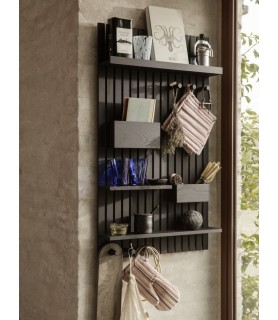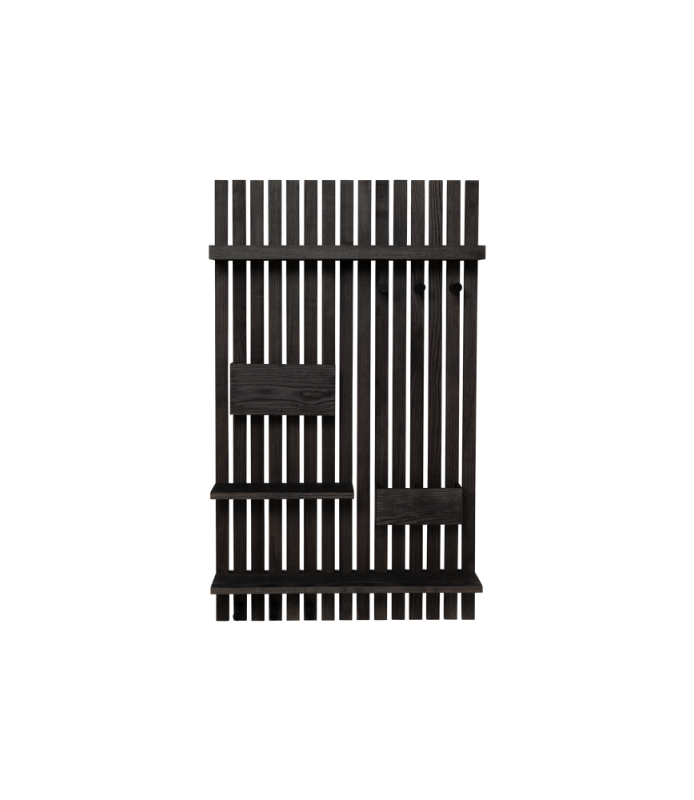 Keep order in your everyday essentials with this Multi Shelf. With practical pockets and knobs, you can easily sort out your keys and credit cards in the hallway, use it in the office for paper and stationery, or wherever else you find yourself in need of an organising hand. Made of black ash wood slats, it preserves a natural expression that seamlessly blends into a modern interior, making your life a little easier, one knob at a time.