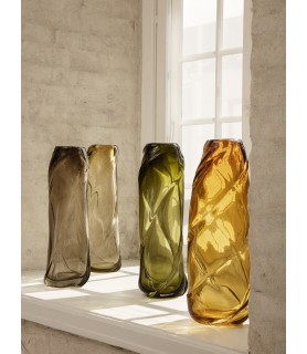 The mouthblown and oversized Water Swirl Vase recalls a whirl of cascading liquid. With its translucent coloured glass, the vase achieves a light and effortless, almost dancing, expression despite being crafted from solid, massive glass. Fill the vase with flowers or stalks, or style it solo and enjoy how the sun filters through the transparent glass. Enjoy the unique twists and curves of each individual piece, as no two vases are identical.