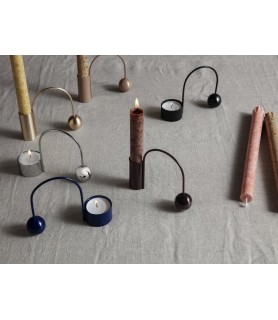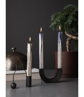 El portavelas Balance muestra un ejercicio para dominar el arte del equilibrio, cada parte contrarrestando a la otra para alcanzar un momento de quietud tranquila. Las formas geométricas son a la vez escultóricas y funcionales, ya que el arco se puede utilizar como asa para llevar el portavelas.