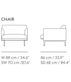 La serie Outline agrega nuevas perspectivas a los sofás clásicos de diseño escandinavo de la década de 1960, combinando los ideales de simplicidad y función en uno. Con el diseño que toma su nombre del fuerte contorno de un sofá, la serie Outline es limpia y elegante en el exterior con un asiento profundo y una amortiguación suave en el interior. La serie Outline tiene una expresión que es a la vez elegante pero atemporal, elevada por sus líneas que hacen referencia a formas arquitectónicas junto con sus reposabrazos curvos, lo que le da al diseño una apariencia distinta en varios tamaños y variantes.