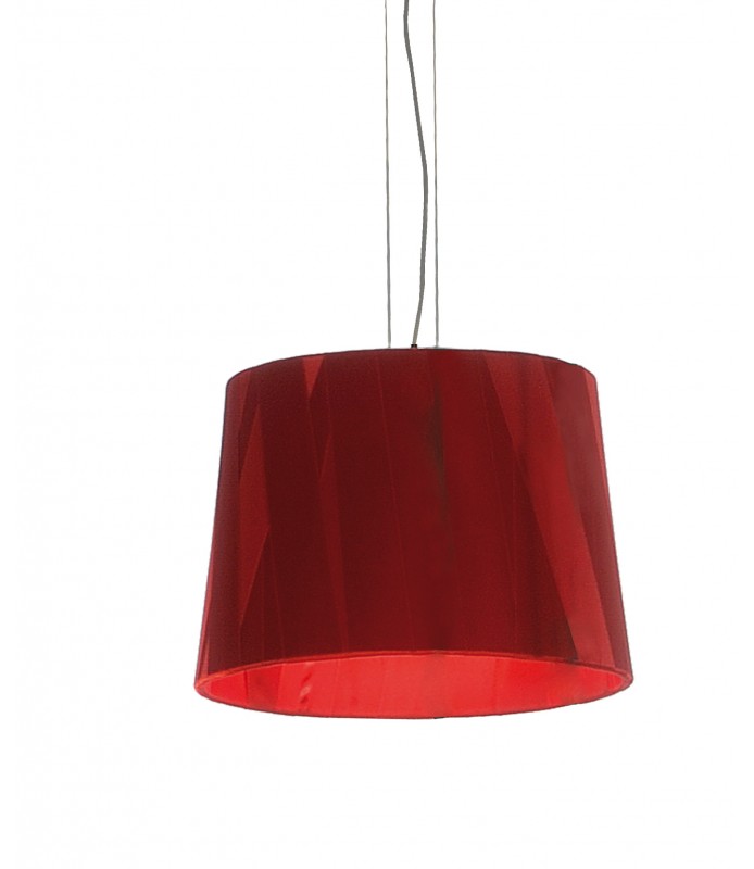DRESS design Jesh+Laub 2007 Lámpara de pie, mesa , suspensión y aplique de pared compuesta por una cinta de raso que envuelve una delicada estructura metálica negra. En los colores blanco, rojo, turquesa, marfil, oro o negro. Dress es un vestido dinámico que expresa densidad y transparencia. La personalidad elegante de un vestido de luz.