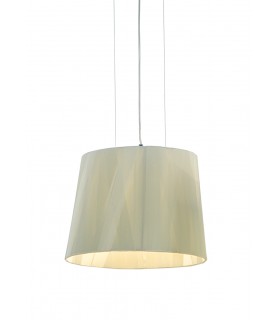 DRESS design Jesh+Laub 2007 Lámpara de pie, mesa , suspensión y aplique de pared compuesta por una cinta de raso que envuelve una delicada estructura metálica negra. En los colores blanco, rojo, turquesa, marfil, oro o negro. Dress es un vestido dinámico que expresa densidad y transparencia. La personalidad elegante de un vestido de luz.