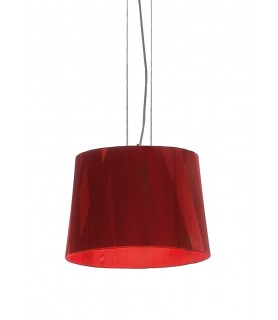 DRESS design Jesh+Laub 2007 Lámpara de pie, mesa , suspensión y aplique de pared compuesta por una cinta de raso que envuelve una delicada estructura metálica negra. En los colores blanco, rojo, turquesa, marfil, oro o negro. Dress es un vestido dinámico que expresa densidad y transparencia. La personalidad elegante de un vestido de luz.