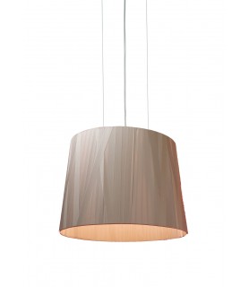 DRESS design Jesh+Laub 2007 Lámpara de pie, mesa , suspensión y aplique de pared compuesta por una cinta de raso que envuelve una delicada estructura metálica negra. En los colores blanco, rojo, turquesa, marfil, oro o negro. Dress es un vestido dinámico que expresa densidad y transparencia. La personalidad elegante de un vestido de luz.