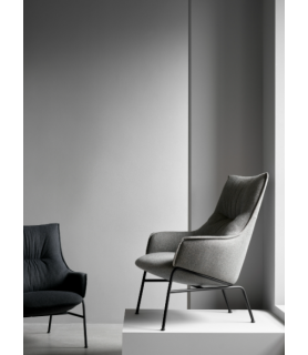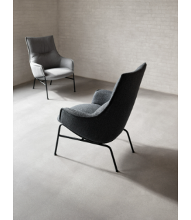 Lightly suspended above a black powder-coated steel frame, the upholstered shell of the Aloe chair by Italian Luca Nichetto is designed with a strong contour refined by piping details along the edge, inspired by the characteristic leaves of the Aloe.