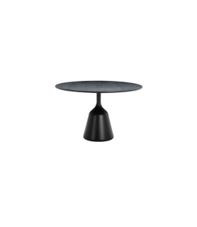 Dining table: Black w/burnished brass, black or dark brown powder-coated cast aluminium.