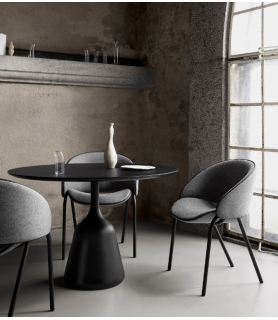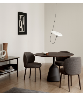 Effortlessly fusing circular and conic-shaped components, the Coin Dining Table amplifies the silhouette of the Coin collection’s side tables to grander proportions, thereby coining the language of geometric minimalism and a dining table that simultaneously blends in whilst standing out.