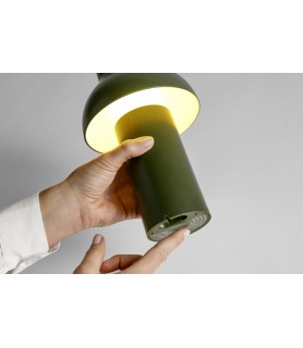 Pierre Charpin’s PC Portable Lamp is a refined and portable freestanding lamp for indoor and outdoor use. Constructed in robust plastic and featuring a matte scratch- and water- resistant finish, its battery-powered design gives the freedom and flexibility to move it anywhere. The light source is hidden from view by a polycarbonate diffuser, available with both a directional and ambient lamp shade, depending on the desired use. The PC Portable Lamps are available in several mono-colour designs or a selection of playful colour combinations, making them ideal for table lighting in numerous domestic environments, as well as at cafés, restaurants, and other public areas.
