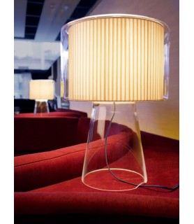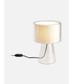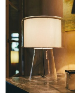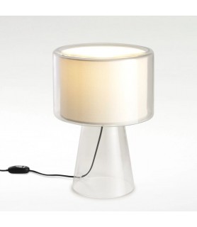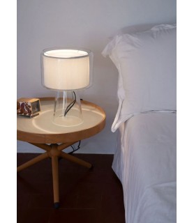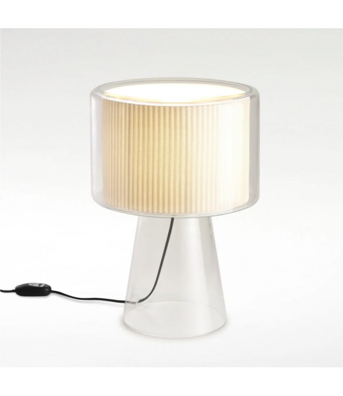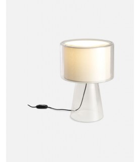 The beauty of the Mercer comes not only from its essential shape but also from how its materials come together. The transparent blown glass structure surrounds the textile lampshade, it seems to float, transmitting lightness and sophistication.