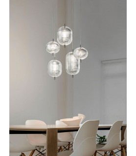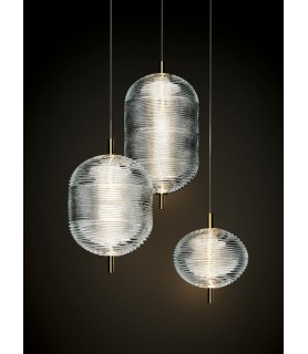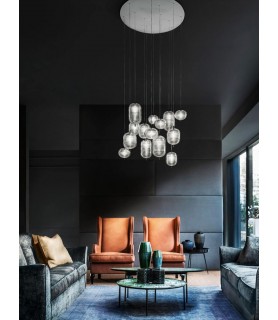 The Jefferson pendant lamp designed by Luca Nichetto references music and iconic images in psychedelic artwork from the 1960s. The spiral motif that decorates the diffuser is embellished by the timeless classic style of Bohemian glass, which diffuses suggestive atmospheres of light. Dynamic in different sizes and multiple compositions, the elegance of Jefferson does not give up the excellent performance of the internal LED light.
