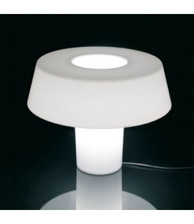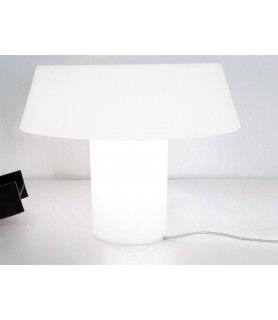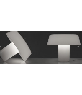 Amàmi is a table lamp with both stand and diffuser in opaline polycarbonate. The extreme simplicity of the lamp’s shape accentuates the plastic, sculptural nature of the light that filters through the different layers and thicknesses of the material, which in turn creates a sense of varying densities.
