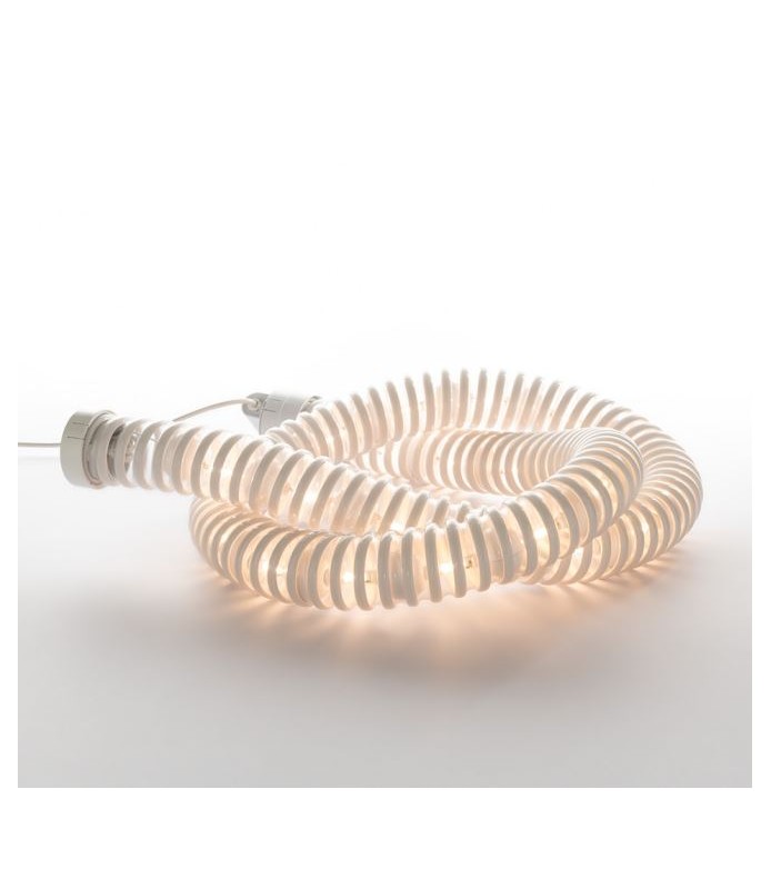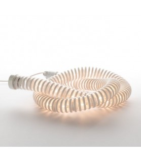 Born in 1970 by Livio Castiglioni and Gianfranco Frattini, and defined by Domus as "a snake of endless light", it immediately became part of the history of Italian and world design. Its structure in translucent flexible PVC, reinforced and with resin terminals, makes it virtually indestructible. The various elements can be connected in series up to a maximum of four pieces can be rolled up as desired. It emits a diffused light and its timeless design makes it an evergreen suitable for all environments.
