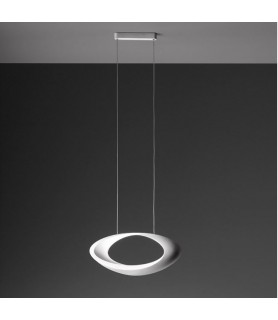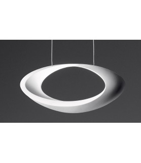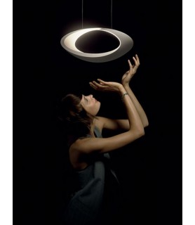 The indirect light shapes the body of the lamp, highlighting its sinuous shape and giving it a surprising luminous ring appearance.