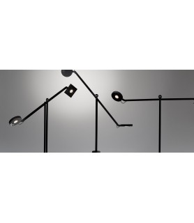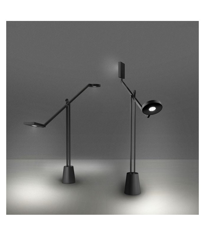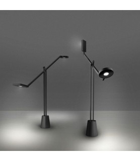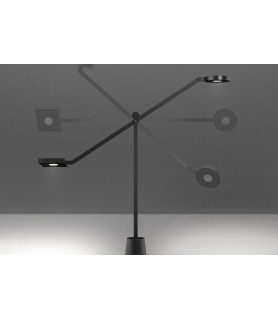 Two opposing heads are in dynamic balance at the ends of a see-saw: the round one has a lower light intensity than the square one.
