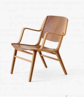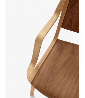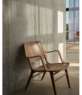 AX represents one of the first times that plywood was shaped in 3D. The continuous curve of the armrests is mirrored in the frame, indicative of Hvidt & Mølgaard’s training in Danish cabinetry. Their expert engineering of the construction ensures unsurpassed ergonomics, resulting in the design’s reputation as the most comfortable wooden chair of its kind. Available in Lacquered Oak and Walnut or Dark Stained Oak and Walnut.