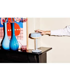 Bellboy. A classic table lamp, but with a new look and a five-star design that hides a very clever operator. The Bellboy Cordless can easily sit on your desk, dresser or nightstand. And thanks to its uniform powder-coated aluminum coating, you can even use it on the balcony. Use the included cable to charge the Bellboy. Stimulate or tone down his enthusiasm using the touch button on the top.
