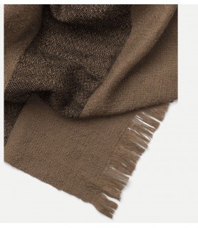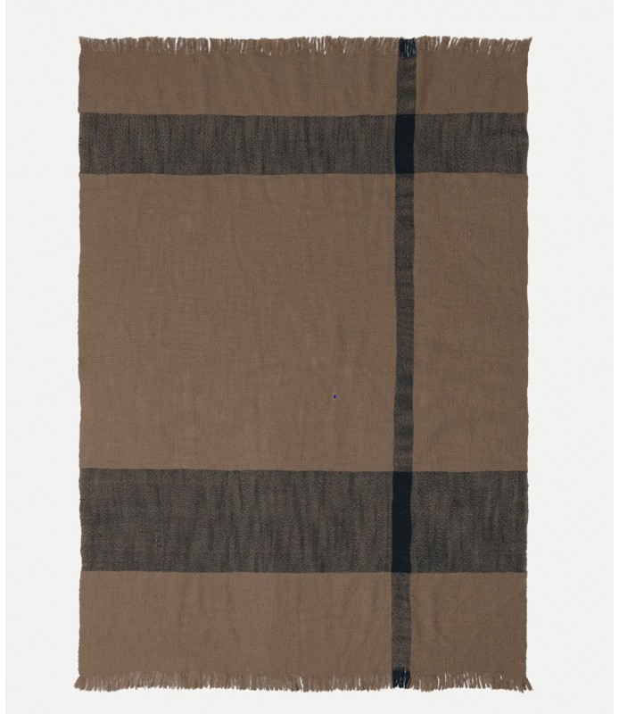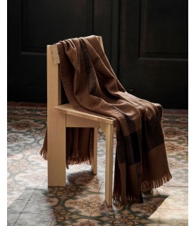 The Dry Blanket is a cozy blanket made entirely from an even wool yarn that will add a warm, inviting feeling to any space. Patterned with an oversized check, the understated design is completed by decorative fringes.