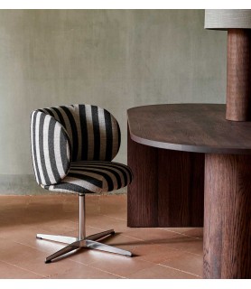 The clean and classic expression of the striped textile has been designed in partnership with Louisiana Museum of Modern Art, and beautifully contrasts the soft, voluminous curves of the Rico Dining Chair. Featuring a functional swivel as the base, the Rico Dining Chair presents a refined addition to the Rico family. Place it around the dining table and offer your guests a comfortable, inviting seat during long dinner parties, or use it as a desk chair in your own home or at the office.