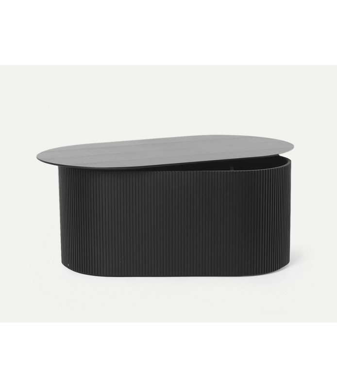 With its sturdy style, the Podia Table will make a comfortable base of your living room. The oval table is made of wood, and the sides feature slats, underlining the graphical expression of the practicable table – lift the table top and find a spacious storage room for all the things you need.