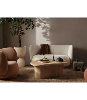 The Rico series welcomes curves and volumes into a classic design defined by soft lines and an embracing expression. Contrasting the sturdiness of the two-seater’s frame, the sofa has an upholstery of timeless, yet easeful bouclé fabric, which is woven of uneven yarn to attain the rich, loopy texture of the surface. The curvaceous nature of this petite two-seater adds a modern union of comfort and elegance to any room and makes you feel drawn into its motherly embrace.