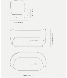 Material: Fabric: Nordic Bouclé. 30% wool, 30% cotton, 30% acrylic, 5% polyester, and 5% other fibers. Backrest: Molded foam with inner steel structure. Seat: PU foam with inner wooden structure. Feet: Low density polyethylene