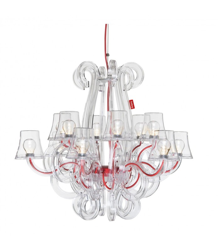 The Fatboy RockCoco Transparent is the world's first outdoor chandelier. Still, this designer chandelier will also feel at home indoors. It is undoubtedly a refined and durable design piece for your interior or exterior. The plastic chandelier stands out thanks to the iconic Fatboy wiring, visible through its transparent exterior. Plus: This modern LED lamp can be dimmed and dimmed with a remote control.