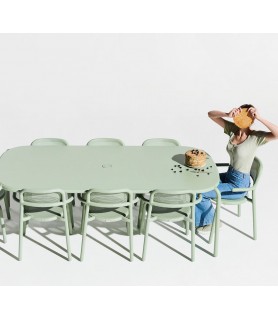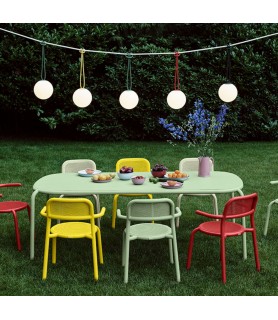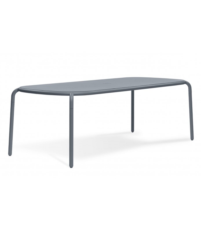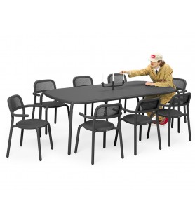 Looking to enjoy a relaxed outdoor dinner with your family and friends? Without a doubt Toni Tablo could help you achieve this. With a length of 2.2 meters, the table can seat up to 8 people. The aluminum material has allowed us to manufacture an elegant and light table that can be easily moved. The central hole is used to hold an umbrella during the day or for the Toní 3-arm candelabra at night. Toní is a winner. The Toní Tablo is easy to maintain and, thanks to its top-quality exterior coating, the table is stainless, weather-resistant and its color does not fade over time.