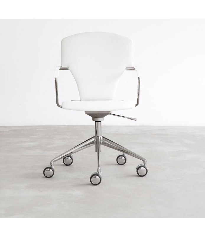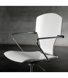 It is a designer office chair made of wood with different finishes and a chrome structure, which offers excellent comfort and durability.