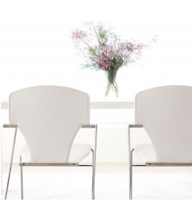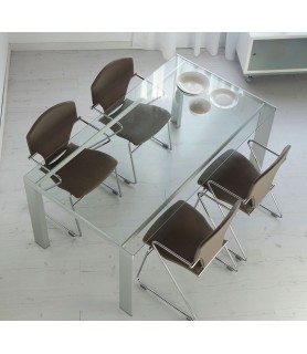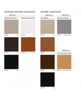 The structure is made of chromed steel and its shell is upholstered in fabric, leather or eco-leather.