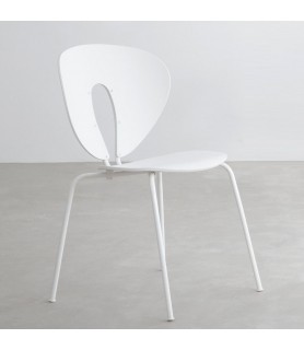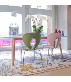 The Globus Polypropylene chair by Stua is a light and cozy chair with curves in the backrest that support the back, providing enveloping comfort.