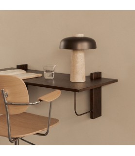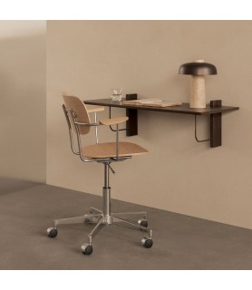 Designed to seamlessly transition into home settings, catering to remote work and the need for stylish yet functional home office furniture, the Corbel Wall Desk delivers a flexible, space-saving solution particularly beneficial for smaller spaces. The shelf takes its name and design cues from architectural weight-bearing brackets traditionally made from stone or wood. This inspiration infuses the design with a sense of structural elegance. Designed with a small distance to the wall for neat cord management, solid wood edges enhance the table top's durability, while the smooth linoleum desk surface contributes to a practical and professional workspace.