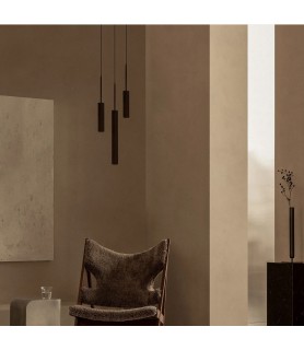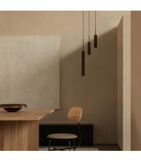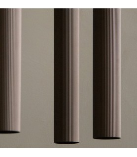 The Tubulaire Pendant Canopy combines industrial charm with a sleek and modern design to create a visually striking lighting solution. Set on a canopy fixture, three reeded aluminium pendants deliver precisely targeted direct and task lighting for enhanced visibility and functionality in a range of settings. The metal shades are anodised to create a bronzed brass surface finish that adds warmth to the sleek design.