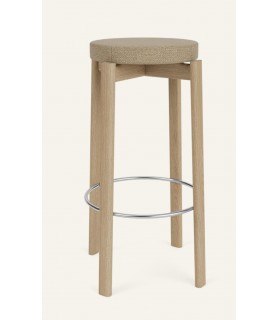 Looking to time-honoured Danish cabinetmaking traditions, the Passage Bar Stool displays modern design and woodworking through traditional techniques. Crafted from solid walnut or FSC™-certified solid oak with a lacquered finish, the rich colour and luxurious grain pattern inherent to the high-quality hardwood ensure an enduring aesthetic. Thoughtfully designed and offered in an upholstered version for added ease, a brushed brass or brushed steel foot ring ensures a comfortable seating experience for extended periods, while the stool's counter height aligns seamlessly with kitchens, bars and other communal spaces, making it a versatile design that effortlessly blends functionality with comfort.