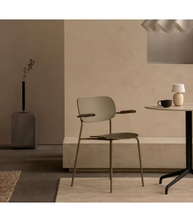 Designed in weather-resistant recycled plastic for hassle-free upkeep, the Co Dining Chair, Outdoor is a practical and reliable choice for outdoor environments year-round. Its stackable design offers space-efficient solution for storage and convenient organisation when not in use. Despite its durability, the chair remains comfortable and lightweight, facilitating easy movement and rearrangement of outdoor seating arrangements as required, while its sleek and minimalist design, available with or without armrests, blends seamlessly into a range of settings, from patios to gardens