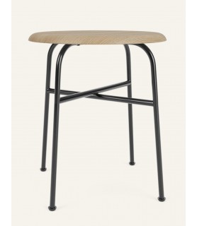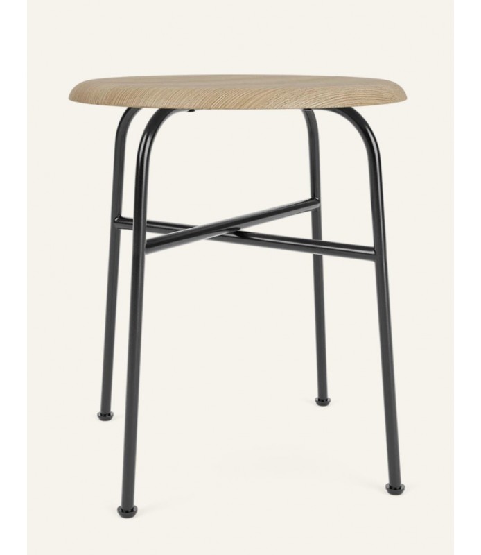 With its characteristic clean lines and sturdy base in tubular black powder-coated steel, tethered with cross bars for support, the Afteroom Stool comes in three heights, making it easy to slide up to a bar, counter or table. Boasting a high standard of craftsmanship and durability for long-lasting use, in wood veneer the stool brings warmth and tactility to interiors while its sleek, minimalist profile ensures it fits seamlessly into any setting.