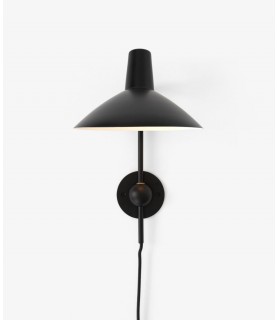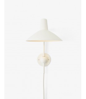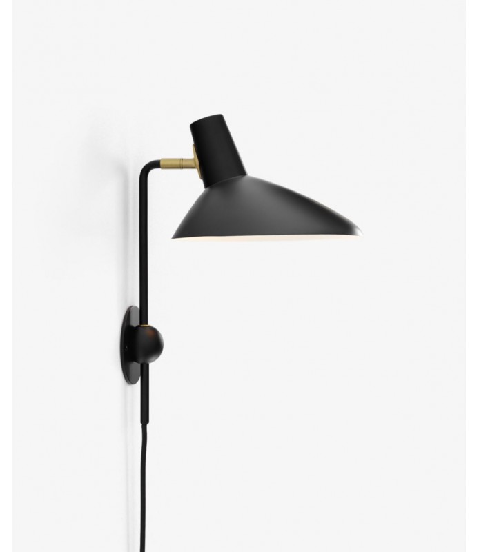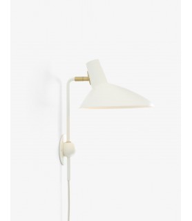 An adaptation inspired by sketches of the original lamp by Hvidt & Mølgaard, the new Tripod Wall Lamp remains true to the essence of the Tripod design. Crafted from lacquered aluminum, the wall lamp is anchored by a spherical base that establishes a visually solid foundation, while the shade’s swivel feature allows the lamp to distribute a generous diffusion of light. The addition of a new colourway, white with brass details, illustrates the timeless appeal of a classic design.