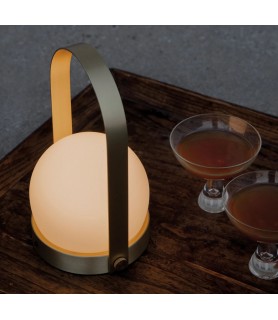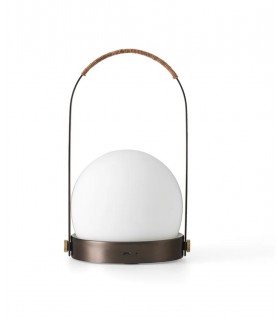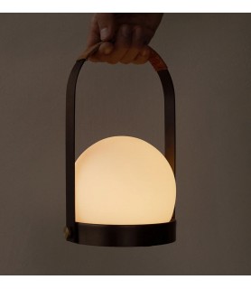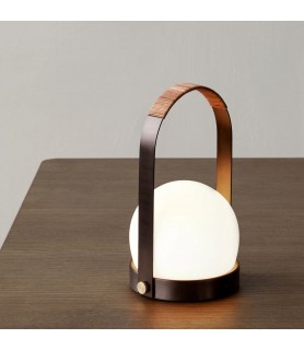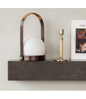 Bound with soft yet durable leather on its browned metal handle (only bronzed brass), the portable Carrie LED Lamp holds a warm orb of light in its basket-like base. Providing up to ten hours of light when fully charged, the lamp moves effortlessly from the table to the terrace or a bookcase to a desk, illuminating the dark with its sophisticated glow. The cordless design charges via a concealed magnetic connector and USB cable. The cable charges with a standard USB charger plug. Comes without charger plug.