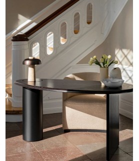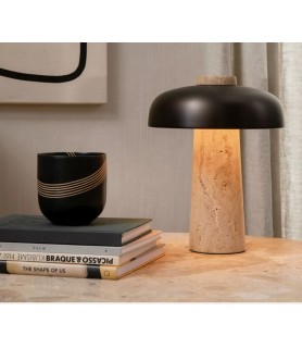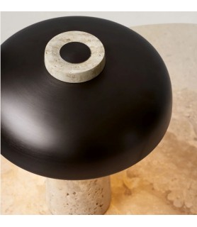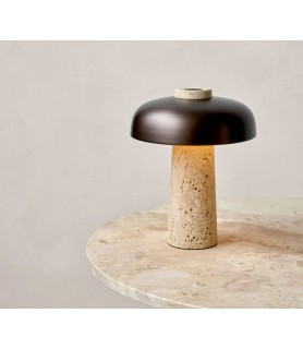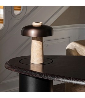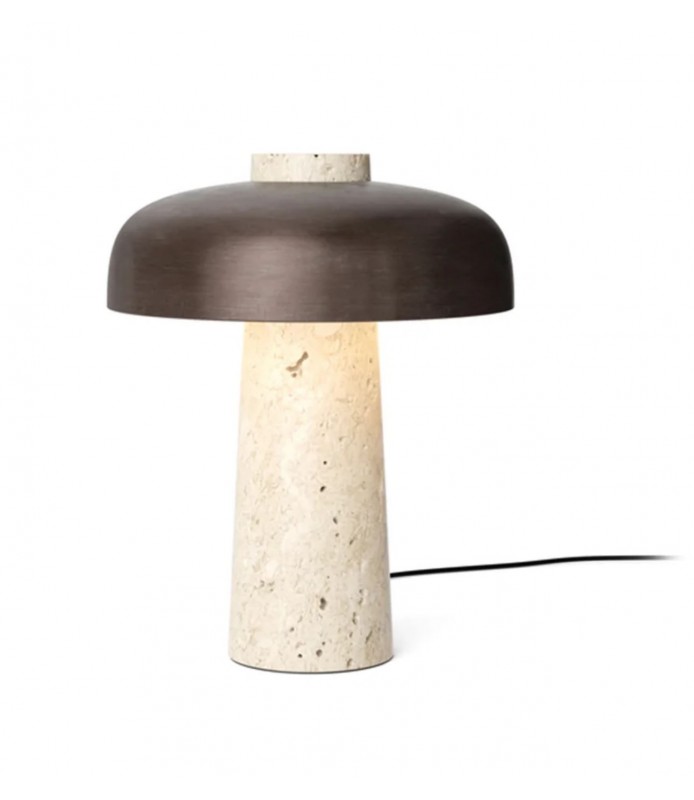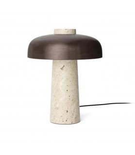 In his search for simple and clever solutions in any given space, Danish designer Aleksandar Lazic looked to Italian marble tables from the 1970s when creating the Reverse Lamp. Inspired by the play on structure created by geometric constraints, the conical travertine base and curved, bronzed aluminium shade define the lamp’s perfectly balanced expression.