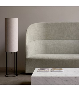Filling spaces with ambient light, the Hashira High Floor Lamp by Norm Architects is characterised by its tall and tactile shade and slender, graphic frame. The elegant, powder-coated steel base lends an elevated, airy expression to the design, its black metal surface creating a contrast to the pale linen shade, which acts as a diffuser, projecting the light in multiple directions while creating cosy, glare-free ambience. A dimmer switch controls the brightness.