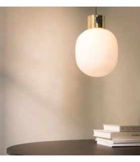 JWDA pendant is part of a Collection of lamps inspired by traditional oil lamps. The lamp is made from honest materials ennobled by the refinement of its design. Simplified and reduced of clutter to its essence, JWDA is minimalist lamp – but with a strong character. It roundedness expresses warmth and friendliness. The lamp represents a study in the contrasts between the raw character of the concrete, the delicate glass and refined brass.