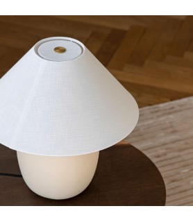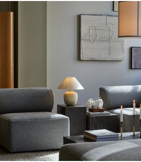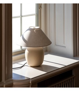 Taking its design cues from childhood homes filled with treasures shaped by the human hand, the Torso Table Lamp by Krøyer-Sætter-Lassen is a modern lamp with a timeless look. Uniting raw stoneware with ethereal linen and functional metal details, the portly base, tactile shade and brass touch dimmer create the perfect balance between hard and soft, beauty and purpose.