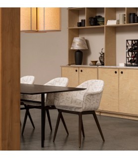 Cerámica, Textil Dedar, Latón bronceado, Acero.