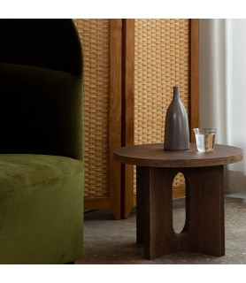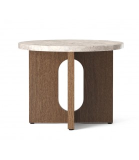 Perfectly proportioned with an intriguing combination of masculine and feminine elements, the Androgyne Side Table is a lesson in contrasts. Making clever use of craftsmanship, the round tabletop overhangs the wide, flat legged base in a meeting of solid and soft lines. Both base and top are sold separately and are available in natural or dark stained oak, walnut and Kunis Breccia stone respectively for a complete and customised furniture piece.