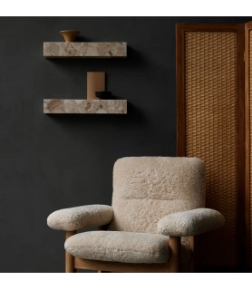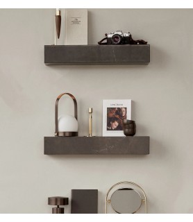 The minimalist profile of the Plinth Shelf is shaped from either Grey Kendzo marble or Kunis Breccia stone. The honed marble and stone carry an air of sophistication and elegance to elevate any space. Equal parts elegant and purposeful, the 60 cm long shelf can be attached horizontally to a wall for use as a display ledge or bookshelf, or vertically as a wall-mounted podium on which to showcase a favourite object.