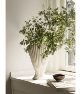 Instantly drawing your attention, the sculptural, ceramic Fountain Vase is an elegant piece with a soft, pleated expression. Inspired by the shape of classic fountains, it can be filled with flowers and branches or stand on its own as a decorative and delicate addition to your table setting. The Fountain Vase has a matte exterior while the inside is finished with a clear glaze.