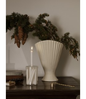 Instantly drawing your attention, the sculptural, ceramic Fountain Vase is an elegant piece with a soft, pleated expression. Inspired by the shape of classic fountains, it can be filled with flowers and branches or stand on its own as a decorative and delicate addition to your table setting. The Fountain Vase has a matte exterior while the inside is finished with a clear glaze.