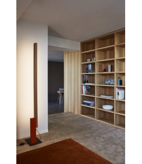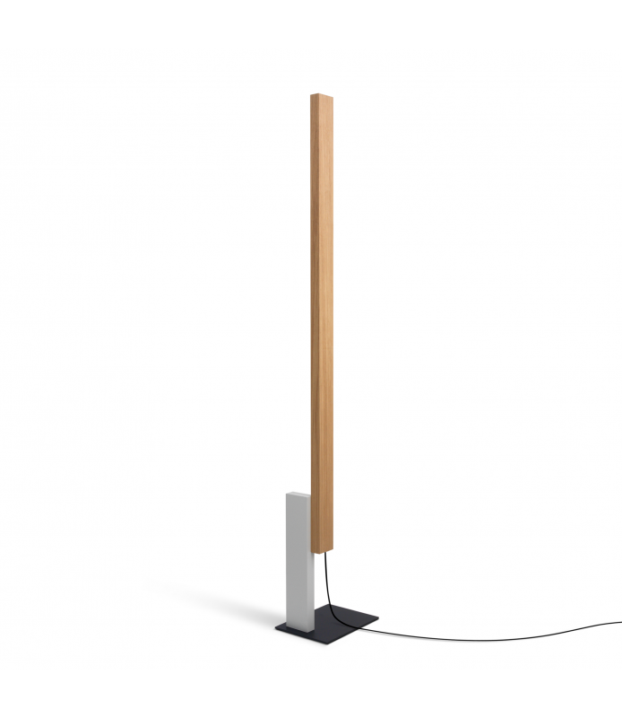 High Line is visually a sculpture of light, a slender line that emits light without revealing where. The new floor lamp by Josep Lluís Xuclà generates indirect light by reflection, with the particularity that it does not bounce against the ceiling but against the wall. Its author is interested in the wall being the one that returns the emitted light, it is his great ally and he needs it close by. Formally it is a composition of volumes and colors. Three blocks that are distinguished by their shapes and tones: the vertical light-bearing element in oak or wenge is attached to a lacquered wooden block and both are erected on the black base. The latter marks the distance where the lamp must be placed, in contact with the wall so that the light is optimal, generating ambient lighting for any space. The sobriety of its forms contrasts with the warmth of the wood and the colors.