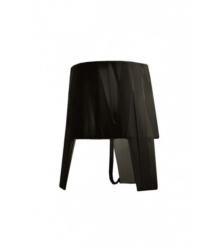 DRESS design Jesh+Laub 2007 Lámpara de pie, mesa , suspensión y aplique de pared compuesta por una cinta de raso que envuelve una delicada estructura metálica negra. En los colores blanco, rojo, turquesa, marfil, oro o negro. Dress es un vestido dinámico que expresa densidad y transparencia. La personalidad elegante de un vestido de luz.